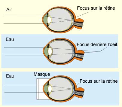 de la cornée est alors pratiquement inexistante. Le masque sous-marin rétablit