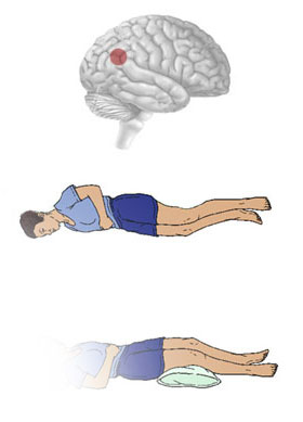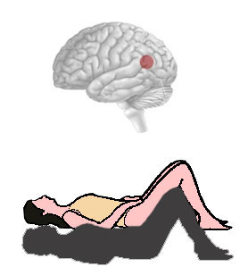 Près d'un demi siècle plus tard, en 2002, avec des électrodes plus fines et donc une plus grande précision, le neurochirurgien suisse Olaf Blanke a déclenché une impression similaire chez une patiente épileptique de 43 ans en stimulant son gyrus angulaire droit. Dans le but d'identifier le foyer épileptique à l'origine de ses crises, des électrodes avaient été implantées directement sur son hémisphère cérébral droit. Lorsque Blanke fit passer du courant dans l'électrode située sur son gyrus angulaire droit, la femme eut d'abord l'impression de s'enfoncer dans son lit ou de tomber de haut. Puis, après avoir augmenté l'intensité de la stimulation, elle déclara se voir de haut, étendue sur le lit, mais n'être capable de voir que ses jambes et son tronc.